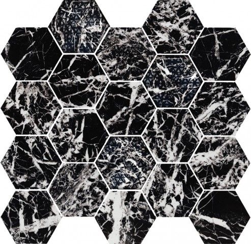 Мозаика 02614 Hexagon Glam Black 34x36 керамогранитная