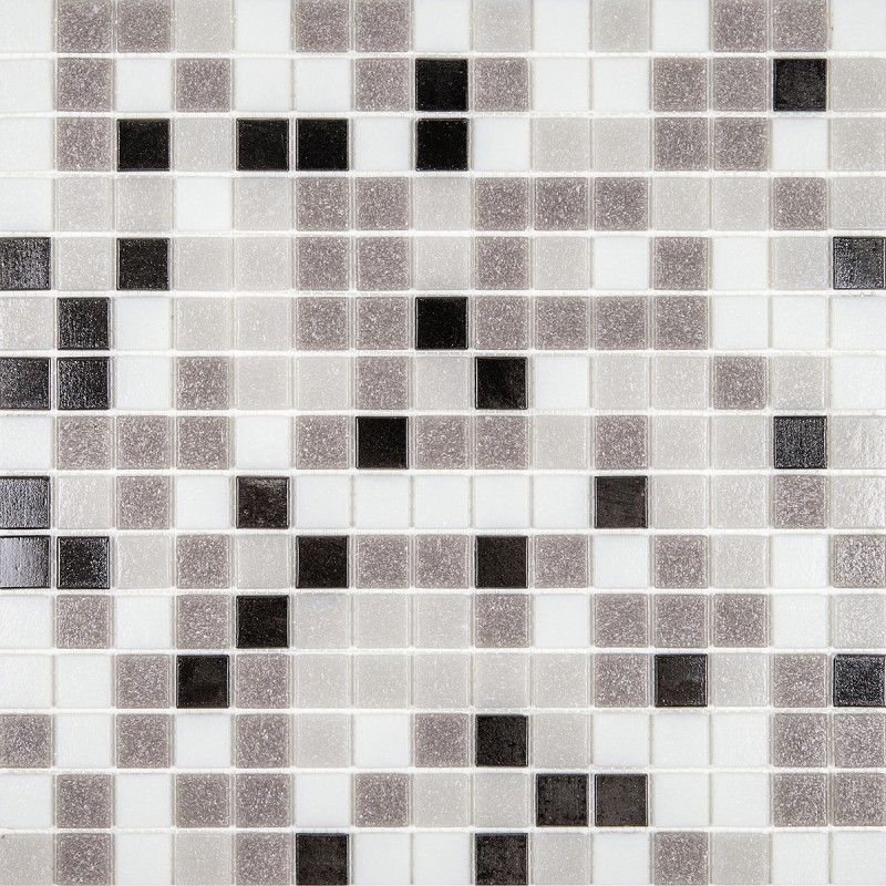 Мозаика ML43003 стекло 32.7х32.7 см глянцевая чип 20x20 мм, белый, серый, черный
