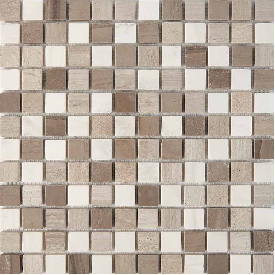 Мозаика из мрамора White Wooden, Dolomiti Bianco, Athens Grey PIX279, чип 23x23 мм, сетка 305х305x6 мм матовая, бежевый, коричневый