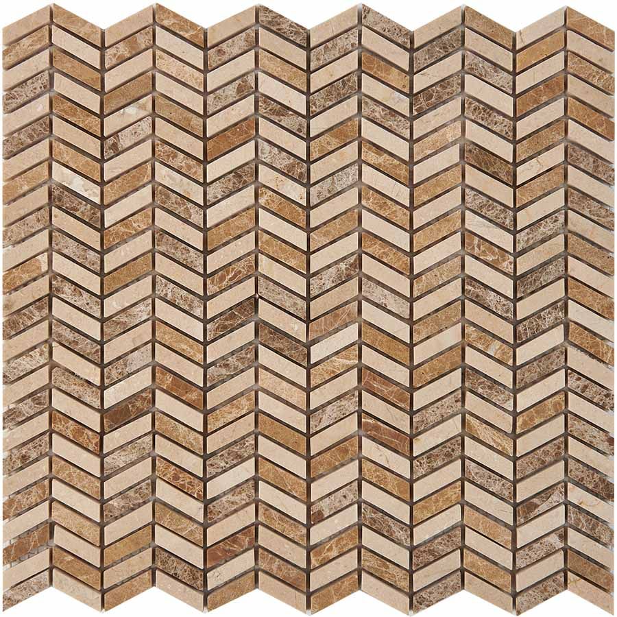 Мозаика из мрамора Light Emperador, Cream Marfil PIX289, чип 27x10 мм, сетка 298х307x8 мм глянцевая, бежевый, коричневый