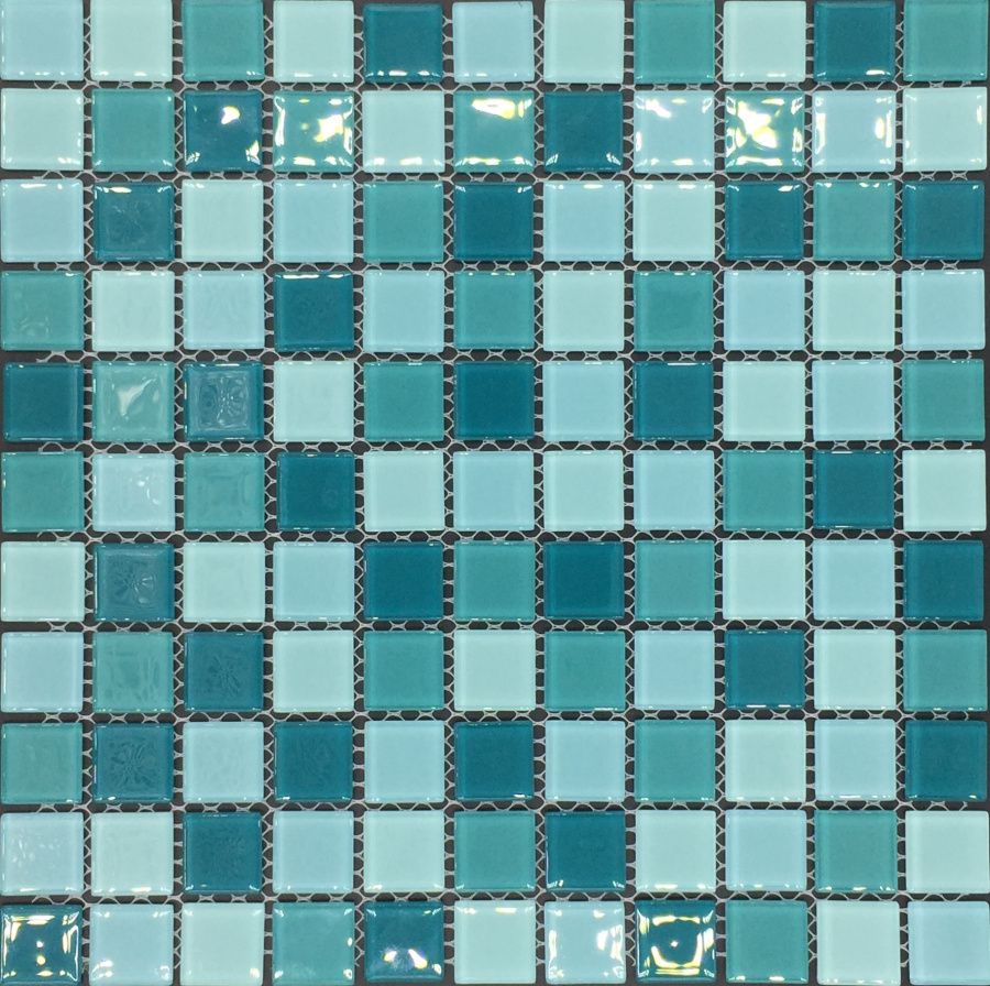 Мозаика из стекла PIX006, чип 25x25 мм, сетка 300х300х4 мм глянцевая, бирюзовый