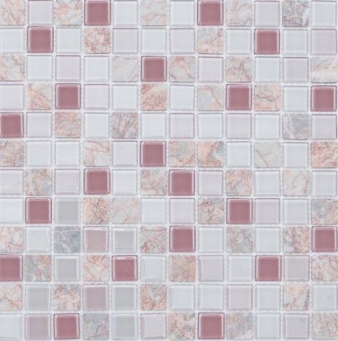 Мозаика S-854 стекло камень 29.8х29.8 см глянцевая чип 23х23 мм, белый, кремовый, розовый