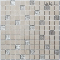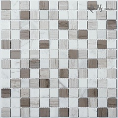 Мозаика K-729 мрамор 30.5х30.5 см матовая чип 15х15 мм, серый