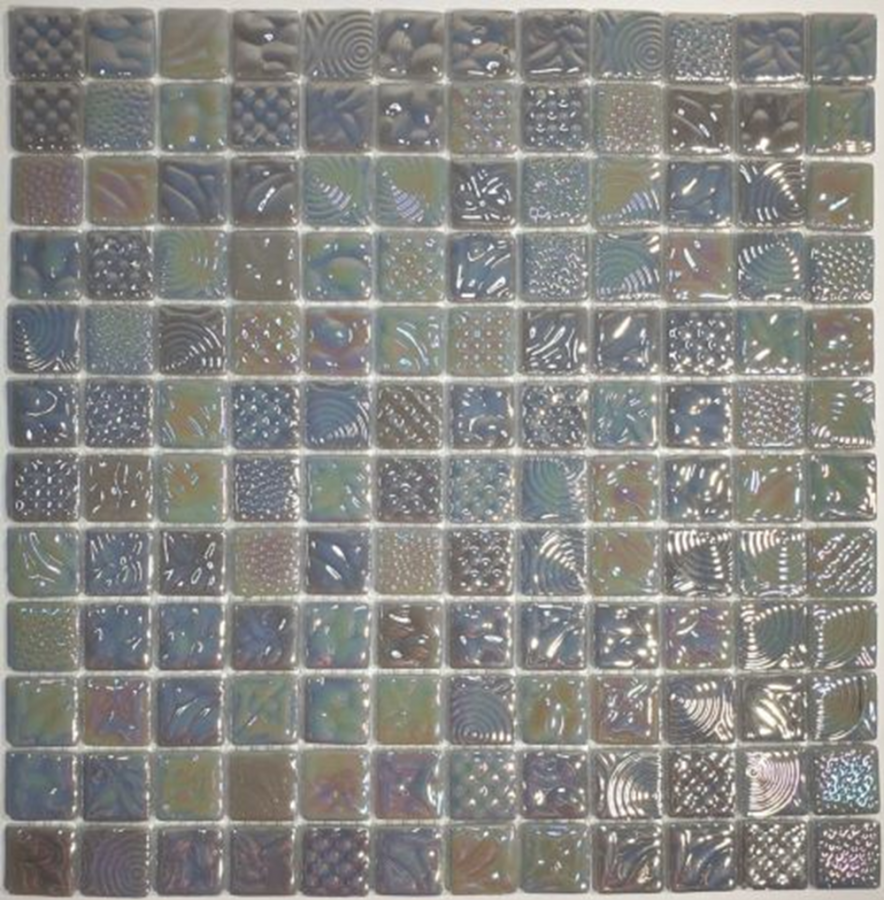 Мозаика L-035 стекло 31.7х31.7 см рифленая, перламутровая чип 2.5х2.5 мм, серый