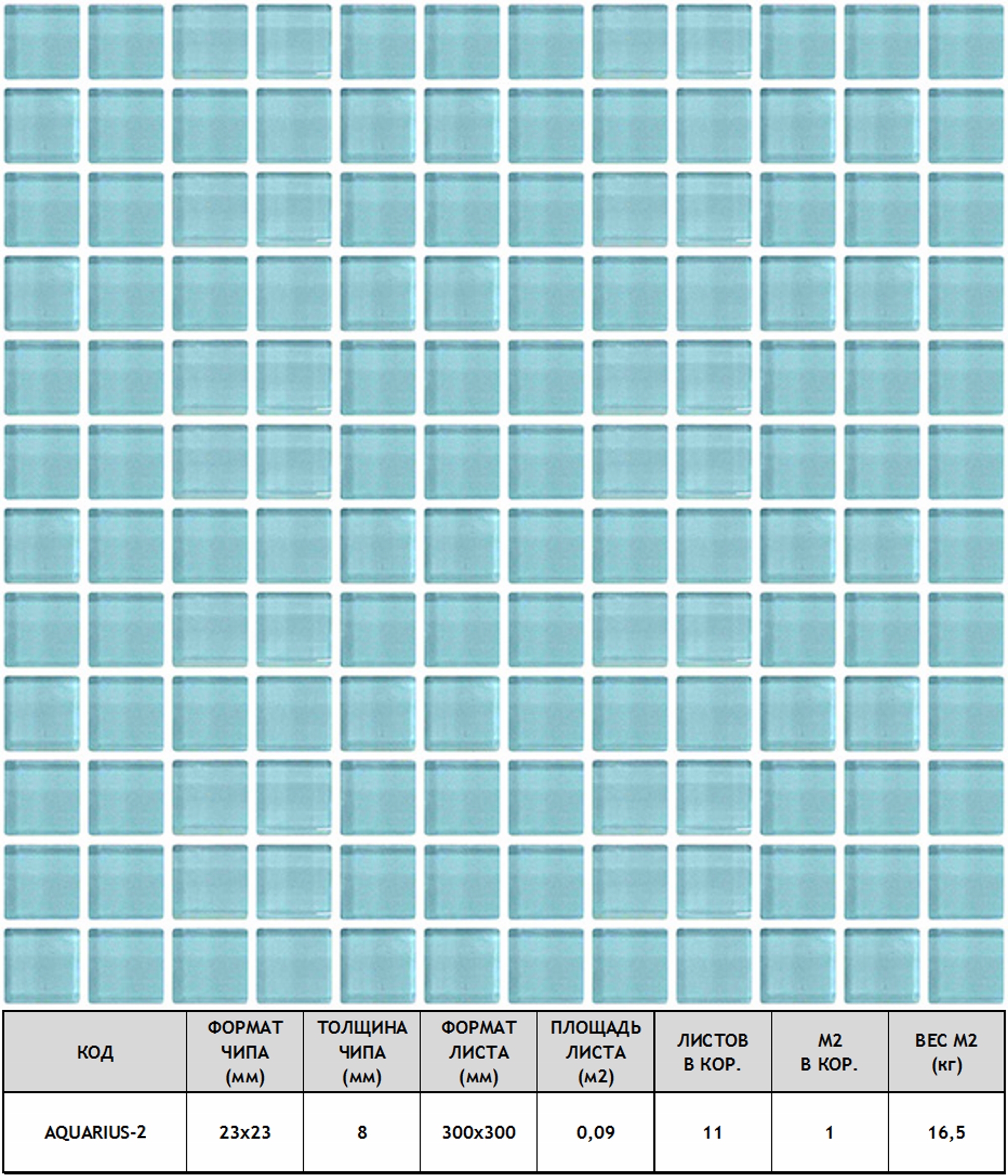 Мозаика Aquarius-2 стекло 30х30 см прозрачная чип 23х23 мм, голубой