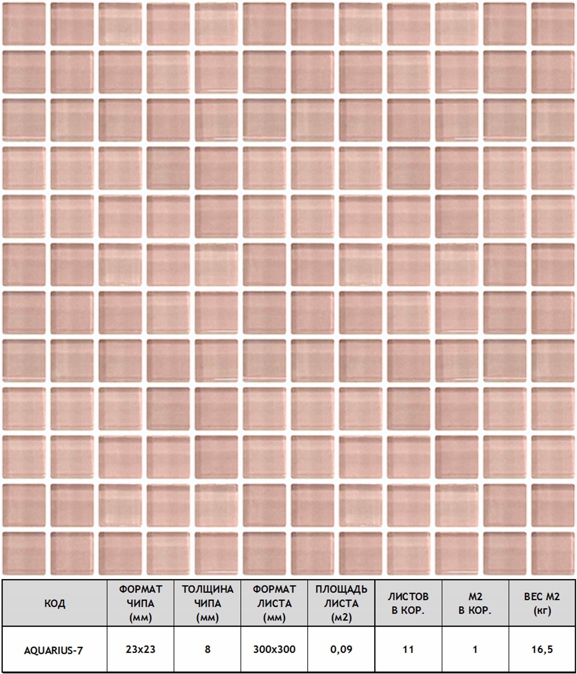 Мозаика Aquarius-7 стекло 30х30 см прозрачная чип 23х23 мм, розовый