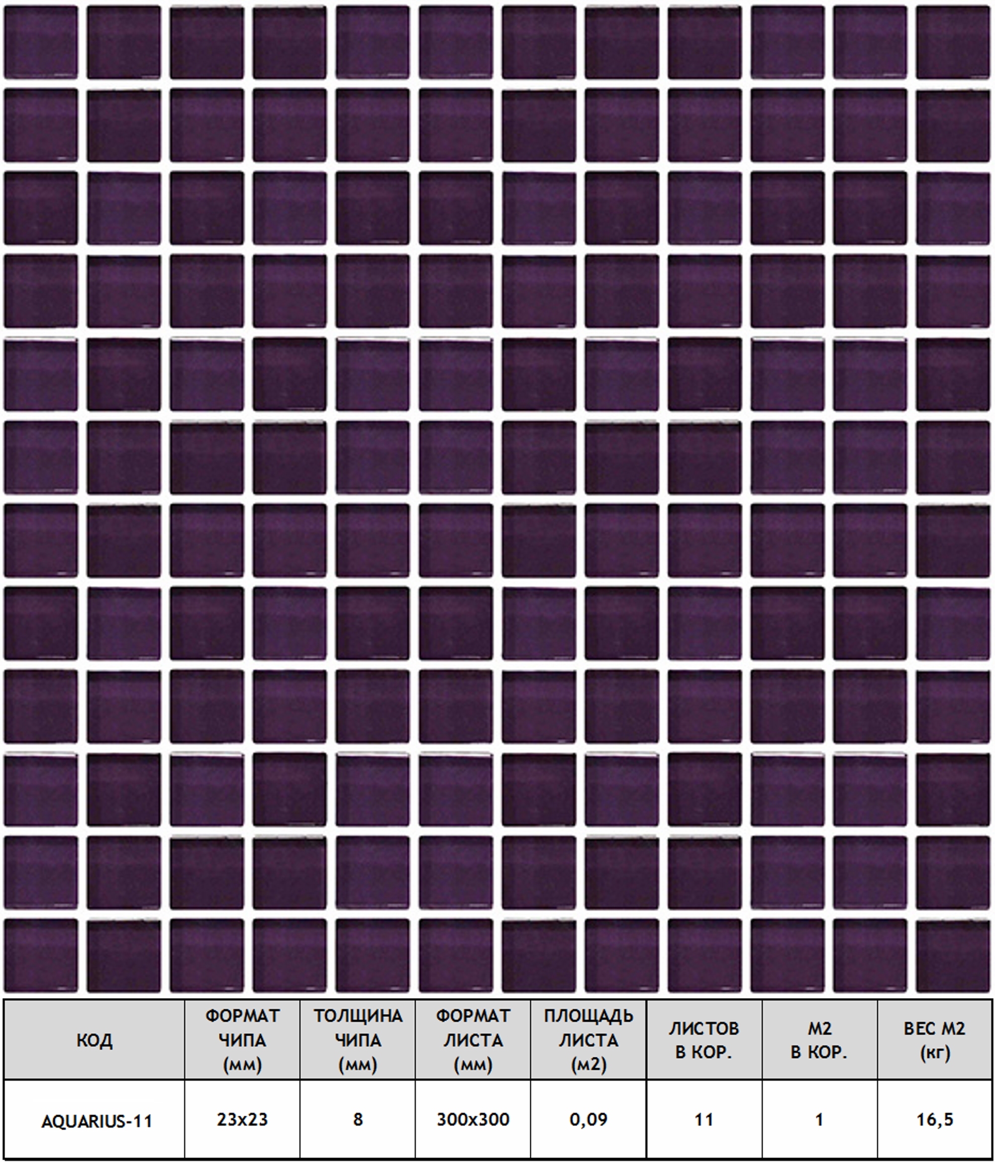 Мозаика Aquarius-11 стекло 30х30 см прозрачная чип 23х23 мм, фиолетовый