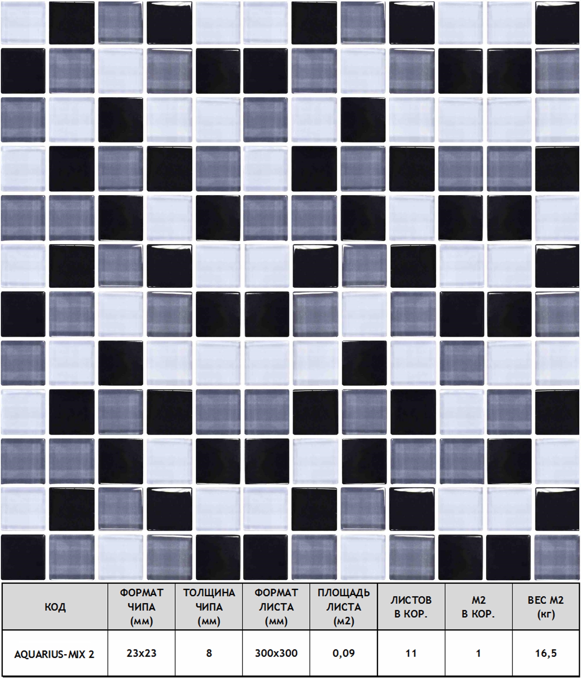 Мозаика Aquarius-mix-2 стекло+камень 30х30 см прозрачная чип 23х23 мм, голубой, серый, черный