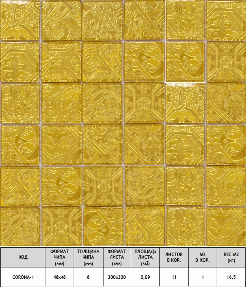 Мозаика Corona-1 стекло 30х30 см прозрачная чип 48х48 мм, золотой