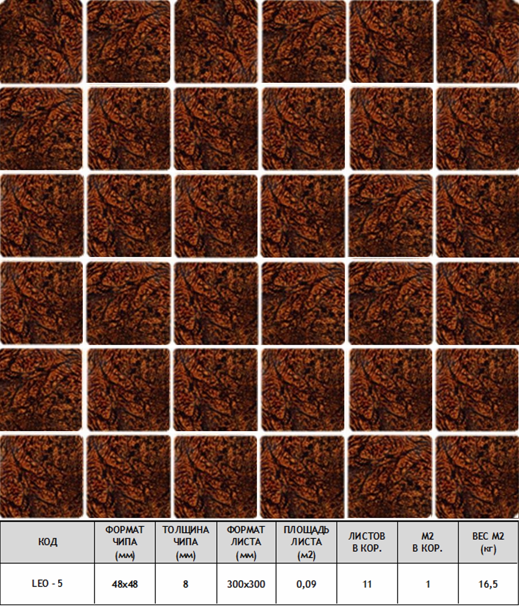 Мозаика Leo-5 стекло 30х30 см прозрачная чип 48х48 мм, коричневый