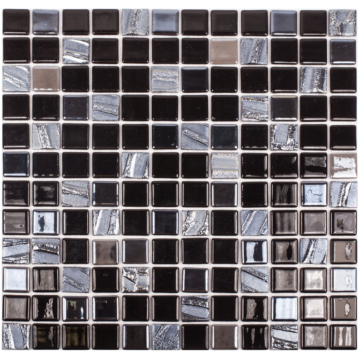 Мозаика Astra Black Черный (на ПУ сцепке) стекло 31.7х31.7 см Vidrepur глянцевая чип 2.5x2.5 мм, бежевый, коричневый, серый, черный С0005553