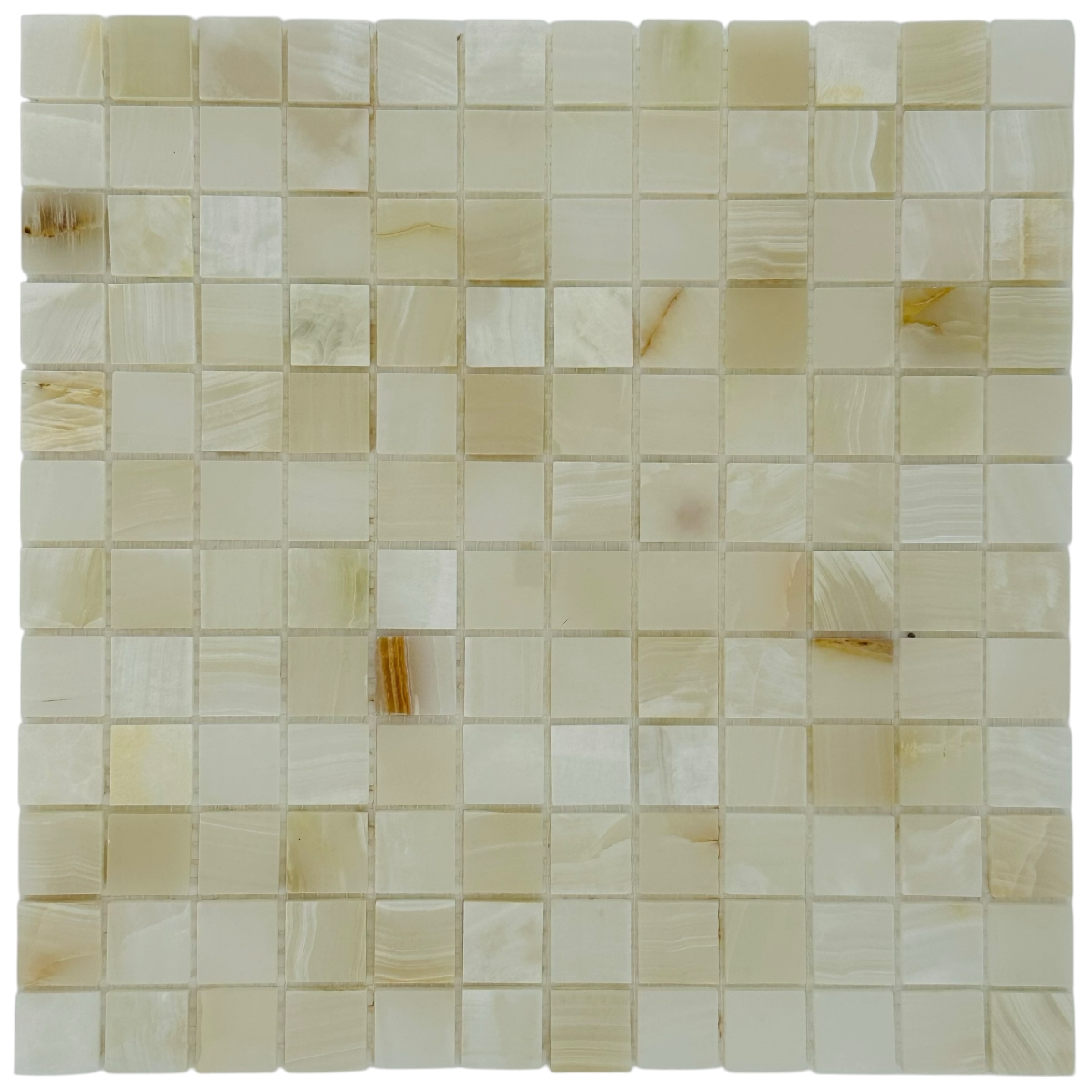 Мозаика Marble Mosaic Onyx white Pol камень 30х30 см полированная чип 23х23 мм, бежевый, белый