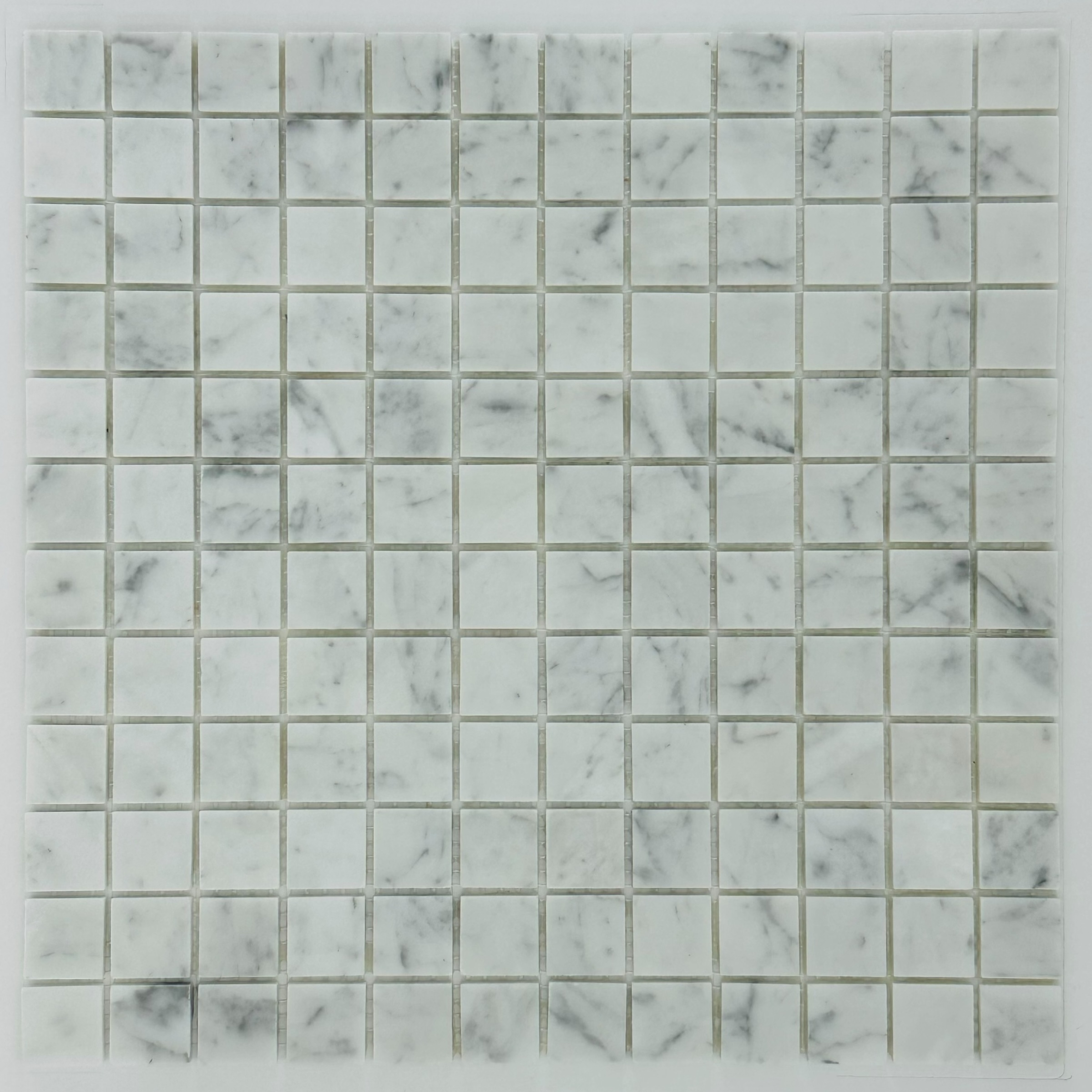 Мозаика Marble Mosaic Carrara white Mat камень 30х30 см матовая чип 23х23 мм, белый, серый