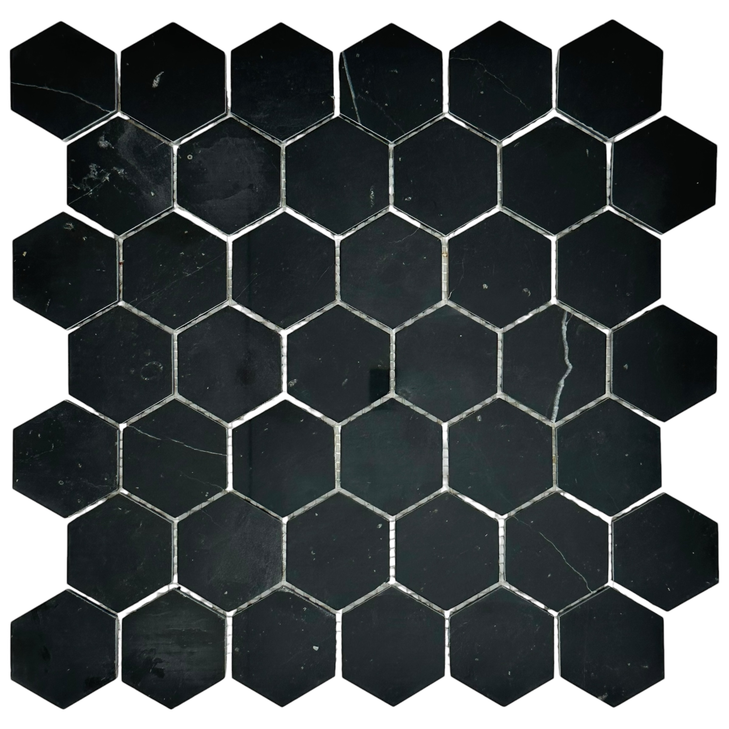 Мозаика Marble Mosaic Hexagon Nero Marquina Pol камень 30х30 см полированная чип 48х48 мм, черный