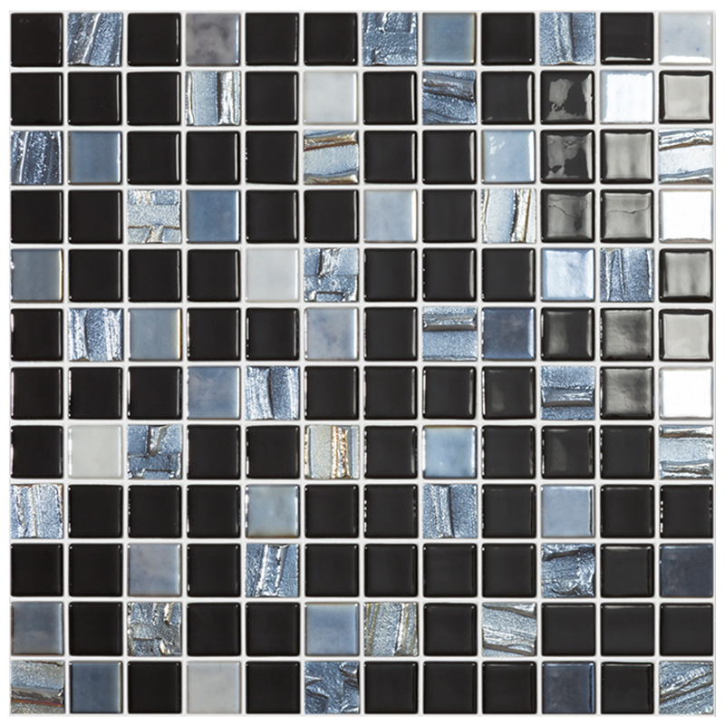 Мозаика Vidrepur Astra Black Mix (на сетке) стекло 31.7х31.7 см глянцевая, рельефная чип 25х25 мм, белый, серый, черный УТ-00000460
