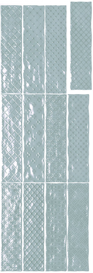 Настенная плитка Music Azul Decor 7.5x30 глянцевая, рельефная (структурированная) керамическая