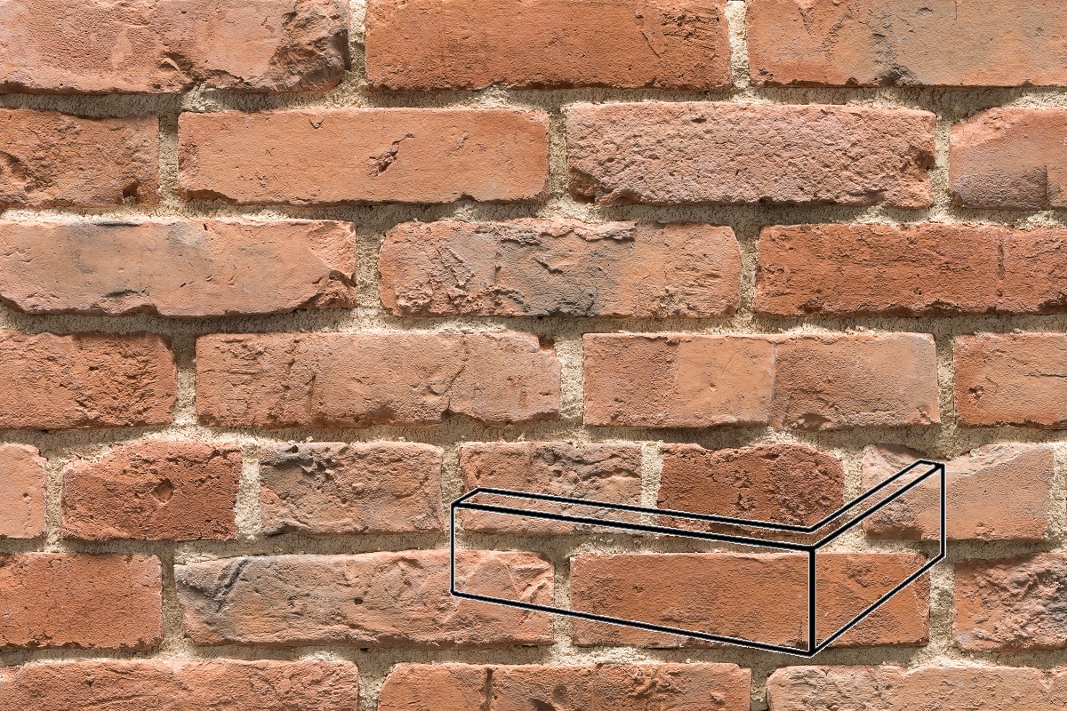 Настенная плитка Угловой элемент Кирпич Кревский 27.14.У (02), шов 12, 6.4х21 Охра Феодал рельефная (структурированная) 00000040042