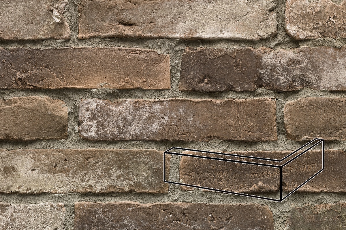 Настенная плитка Угловой элемент Кирпич Мирский в стиле Лофт 15.20.У (02), шов 12, Каштан 5.5х25 Феодал рельефная (структурированная) 00000040028